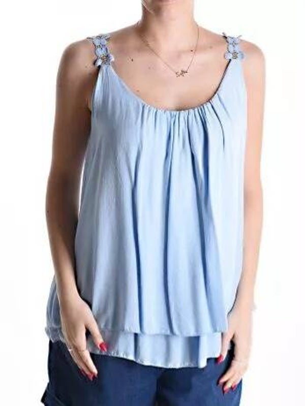 Dubbellaagse top met bloemetjes detail in de schouderbandjes