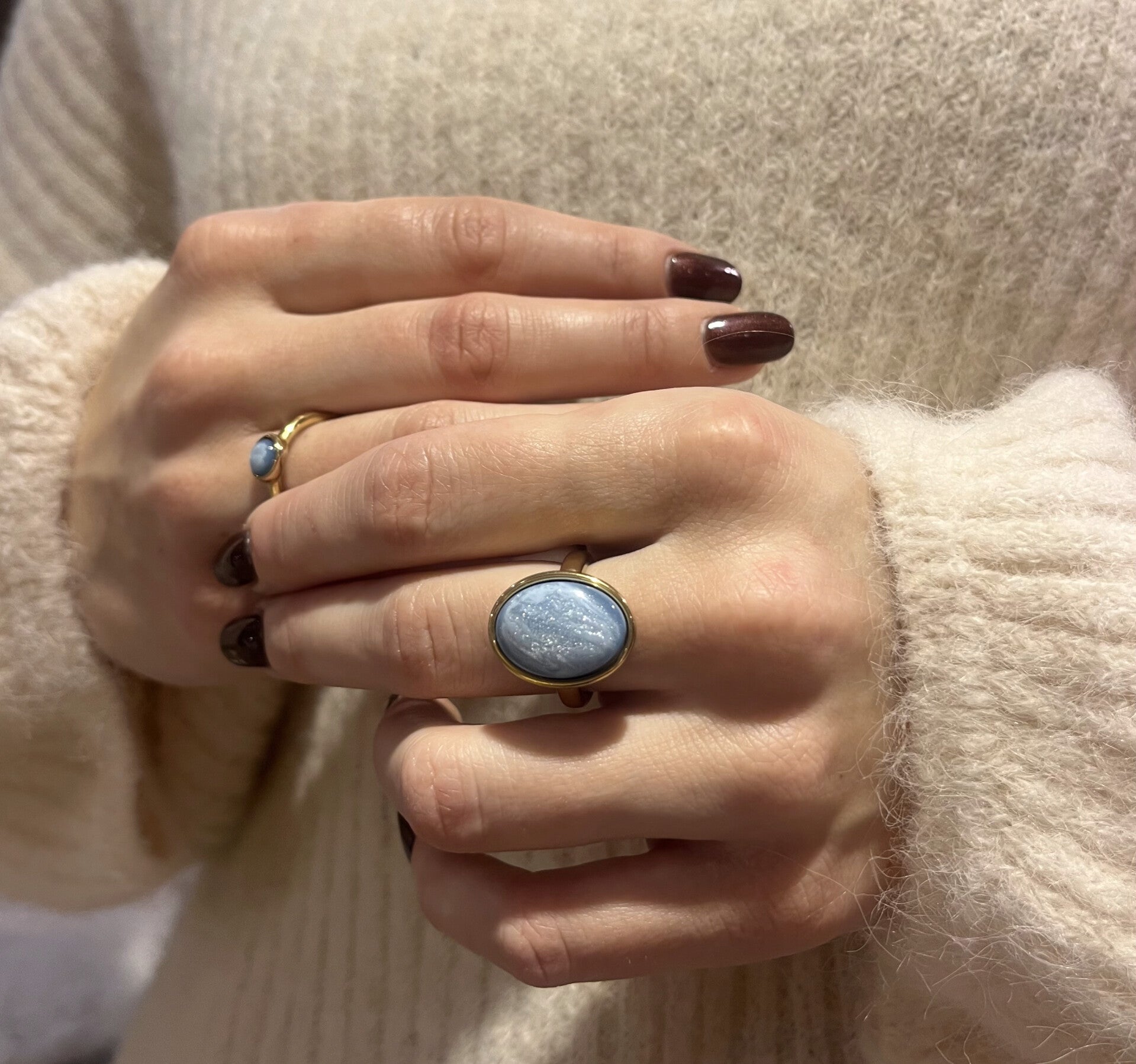 Gouden ring Qoss - IJsblauw