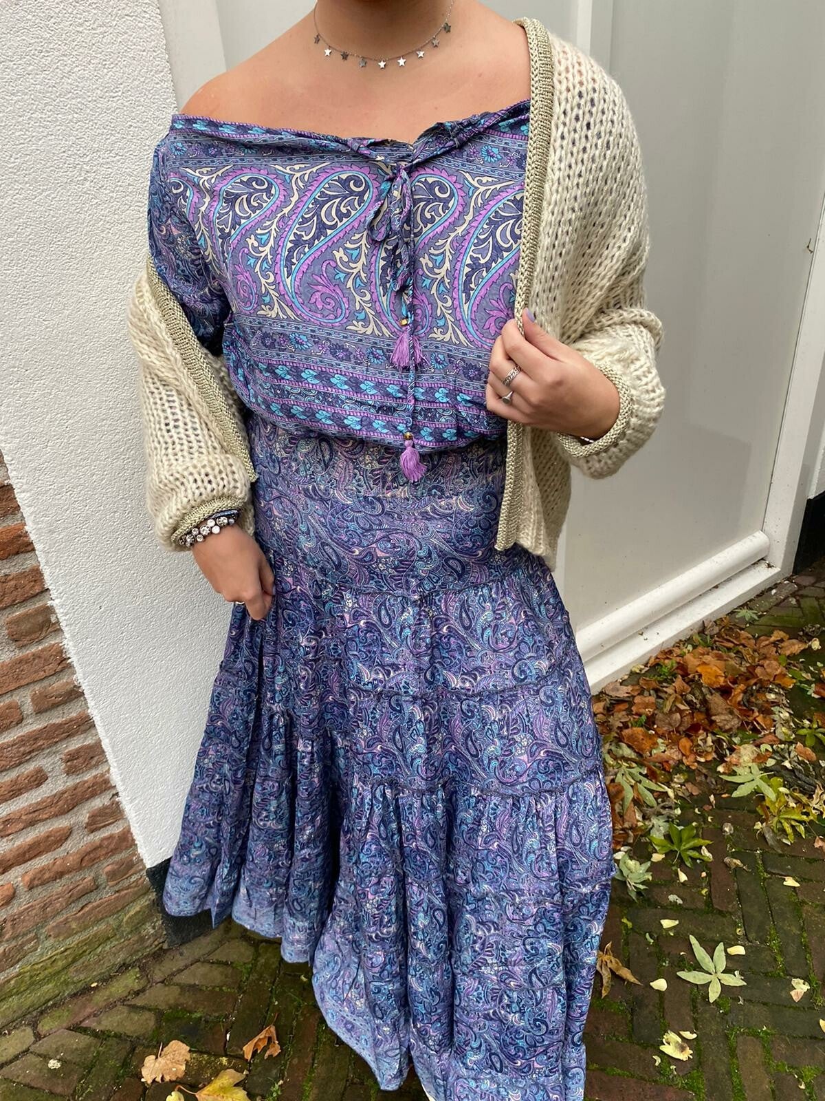 Top, ook off-shoulder t gedragen met aantrekkoord. 3/4mouwtje