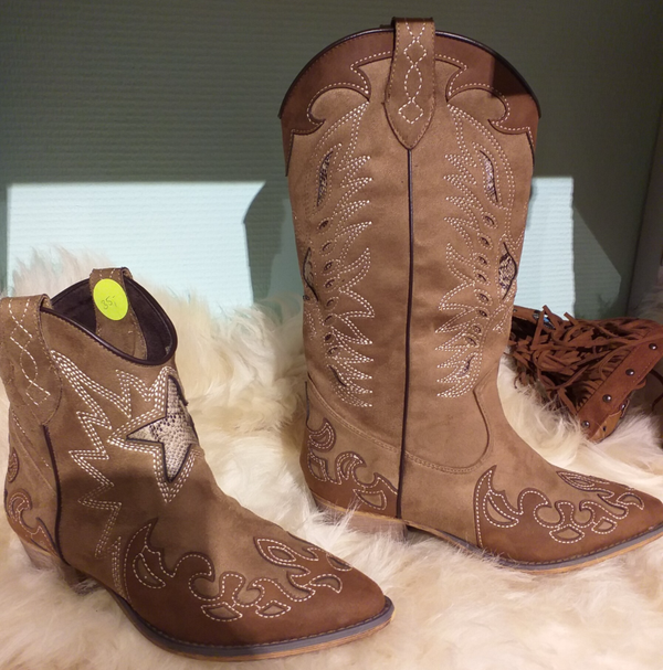 Lage Cowboy laars van PU en Suedine, in 2 kleuren.