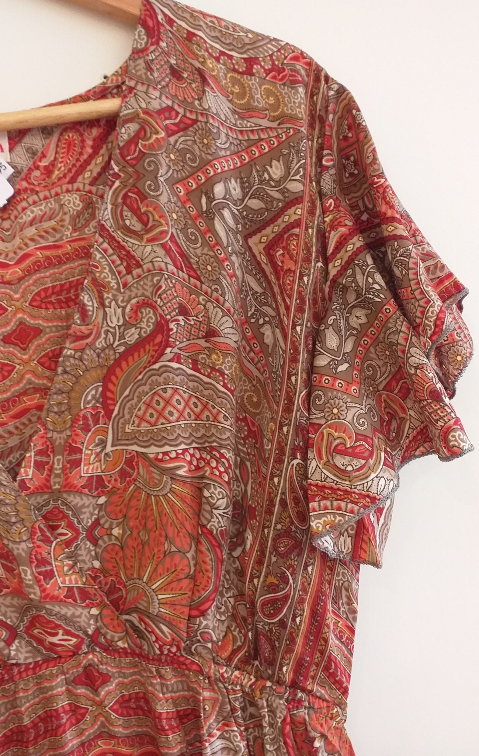 V-hals jurk van zijde met kapmouwtje.