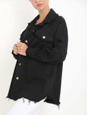 Jas / Bloes van dik katoen met knopen En gerafelde details.