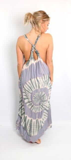 Katoenen tie dye dress van Ibizaflower met speelse details en zakken.