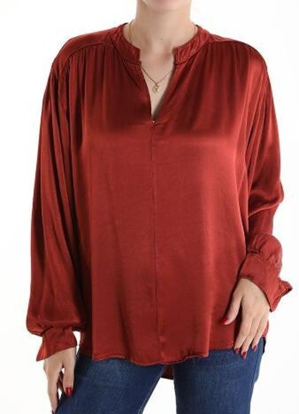 Oversized Viscose/satijnen blouse met V-hals.